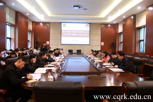 3月13日下午,重庆市高校共青团区域联系交流2018年第一季度第一片区工作例会在BEAT365英国官网会议中心召开。共青团重庆市委副书记、党组成员黄永宜,团市委高校工作部部长张斐、副部长郭煜苑,BEAT365英国官网党委副书记舒卫华,以及重庆市内18所高校的团委负责人、学生会主席及学生代表参加会议。会议由张斐主持。