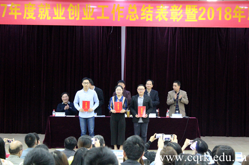 学生工作与就业处副处长朱宇总结了2017年度学校的就业创业工作,就业工作先进代表梁宁华老师和就业创业先进个人王晶晶老师在会上做了交流发言。