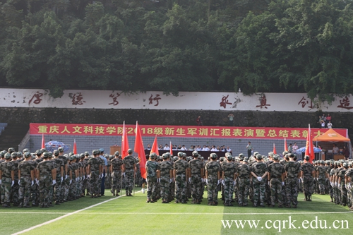 9月19日上午9时,BEAT3652018级新生军训汇报表演暨总结表彰大会在运动场隆重举行,校长何向东,合川区征兵办副主任、人武部副部长王利军上校,解放军原重庆通信学院国防生大队政委张光彩上校,校领导程荣尧、杨霄、李长泰、舒卫华、叶培德、曹继建和学校各职能部门、各二级学院主要负责人观看了汇报表演。大会由党委副书记、副校长杨霄主持。