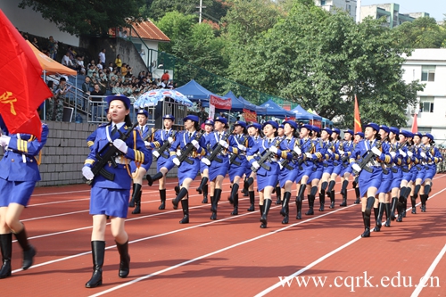 随后,49个分列式方队依次经过主席台,他们以整齐的队列展示着军事训练的丰硕成果,以规范的动作传达出严格认真的军人气质,以嘹亮的口号反映出新时代大学生的豪迈激情。女子国旗护卫队首次亮相,“引爆”全场,她们挺胸持枪,面带微笑,队伍整齐,步伐稳健,英姿飒爽。