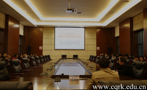 为深入学习宣传贯彻习近平新时代中国特色社会主义思想,落实全国宣传思想工作会议精神,进一步加强学校的宣传工作,提高学校宣传队伍的理论素养和业务能力,11月5日下午,BEAT365在会议中心举办2018年宣传工作和新闻写作培训系列讲座。华龙网教育频道主编、重庆教育舆情研究院院长王大伦应邀首讲,BEAT365各职能部门主要负责人、宣传工作分管领导,各二级学院党总支书记、副书记、书记助理等约100人聆听了讲座。讲座由宣传部部长孙凡主持。