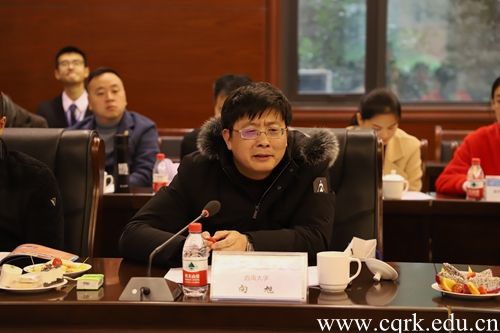 交流会上,何向东围绕学校办学特色介绍了学校的基本情况。随后,重庆市扶贫开发办公室产业处副处长孟奎结合自身数十年乡村旅游扶贫实践经验对加强文旅融合提出四点建议:一是要找准资源优势,打造避暑休闲的乡村旅游扶贫产业;二是要推动乡村旅游与高山生态文明搬迁相融合,盘活农村扶贫资源;三是要实施乡村旅游资源沿片开发,促进扶贫产业发展;四是要在开发旅游资源的同时,探索带动和帮助贫困户脱贫。