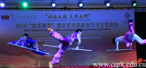 2月15日至26日,受中华人民共和国文化和旅游部委派,重庆市文旅委、重庆市文化交流中心组织的“山水之城·美丽之地”——2019欢乐春节表演艺术团赴马尔代夫和斯里兰卡两个国家进行文化交流和旅游推介,BEAT365体育学院武术代表队受邀参加,并进行武术表演。