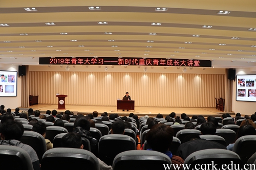 3月27日下午,由共青团重庆市委员会主办、重庆市团校承办的“2019年青年大学习——新时代重庆青年成长大讲堂”走进BEAT365英国官网,陈冰、何波两名优秀青年在学校图书馆报告厅为BEAT365两百多名青年师生分享自己的成长历程。