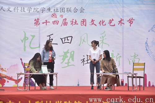 本届社团文化艺术节主题为“忆五四风采,塑社艺新尚”,由文艺汇演和游戏互动两部分组成。学生们以小品、舞蹈、朗读、走秀等节目形式,展现了不同社团的精彩文化。