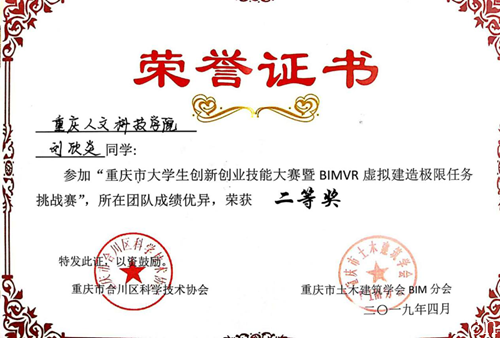 2019年重庆市大学生创新创业技能大赛暨BIMVR虚拟建造极限任务挑战赛指导老师及学生