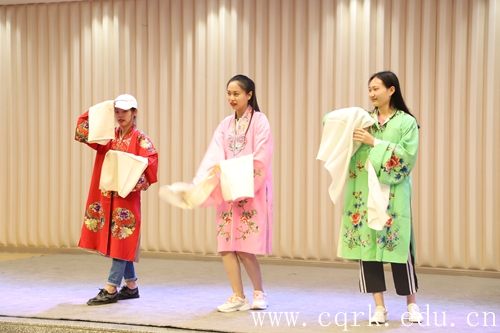 为了让同学们更加直观、深刻地感受国粹艺术魅力,重庆京剧团特别在讲座中穿插了传统京剧折子戏《拾玉镯》《真假李逵》《盗库银》演出,《拾玉镯》孙玉姣的活泼伶俐,《真假李逵》李逵李鬼一正一邪的较量,《盗库银》帅气的短打武旦,通过对花旦、花脸、武旦等不同风格人物的精彩演绎,将京剧的魅力尽展,剧情跌宕起伏,表演美轮美奂,赢得了满堂喝彩。同时重庆京剧团的青年优秀演员、重庆市舞台艺术之星获得者田琳老师还邀请观众上台互动,现场教学京剧“喜、怒、哀、乐”情绪表达演绎,同学们直呼过瘾。师生纷纷表示,通过零距离感受戏曲的魅力,增进了对传统文化的了解,感受到了戏曲文化的博大精深。