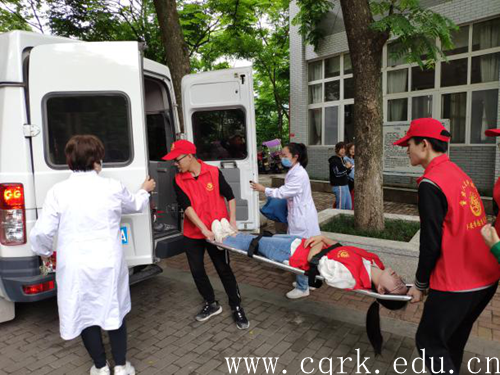 16时35分,演练正式开始,演练模拟两名“犯罪分子”在学校食堂实施纵火,瞬间火光冲天,烟雾弥漫。食堂员工立即拨打火警电话报警,同时工作人员向同学们发出紧急撤离的指示,随后在安全引导员的带领下,400余名师生用湿毛巾或浸湿的衣物捂住口鼻,弯腰低身,有序快速地撤离火灾现场到安全区域。同时,学校在接到火警报警后立即启动反恐、火灾应急预案,学校保卫处保安大队即刻赶往现场实施警戒封锁现场、搭建救灾点、制服了两名纵火“犯罪分子”并搜救转移伤员。与此同时校消防队、合川消防支队赶来控制火情并迅速扑灭火灾,校医院赶到后立即紧急施救并将重伤员即刻送往医院救治。安全引导员在仔细检查完各楼层人员全部疏散后撤离事发现场并宣布人员疏散结束。整个过程历时30分钟左右,一气呵成,精彩的表现得到现场观摩师生的热烈的掌声。