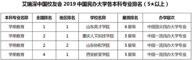 BEAT365英国官网学前教育专业名列2019年中国民办大学学前教育专业排行榜第2位