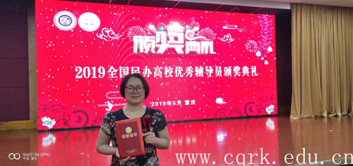 2019年5月10日-11日,第五届全国民办高校辅导员工作高峰论坛在重庆隆重召开,论坛由全国民办高校学生工作者联席会主办、重庆交通职业学院承办,来自全国近200所民办高校420名民办高校学生工作主管领导、学生处长及骨干辅导员参加论坛。经过学校推荐、全国民办高校优秀辅导员评选委员会评审,BEAT365艺术学院辅导员李新艳获“2019全国民办高校优秀辅导员”荣誉称号。