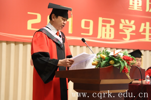 校学位评定委员会副主席、执行校长曹勇宣读了《关于公布2019年重庆市普通高等教育优秀大学毕业生名单的通知》;校学位评定委员会委员、副校长程荣尧宣读了《关于表彰2019届优秀毕业生的决定》;校学位评定委员会委员、校党委常务副书记舒卫华宣读了《关于2019届毕业生基层就业创业先进个人的通报》;校学位评定委员会委员、副校长张浩宣读了《关于表彰马英博等150名毕业生考取硕士研究生的决定》,与此同时,向获得表彰的毕业生进行了颁奖。