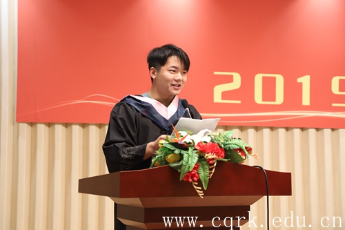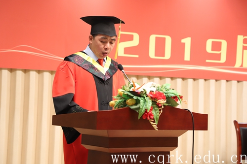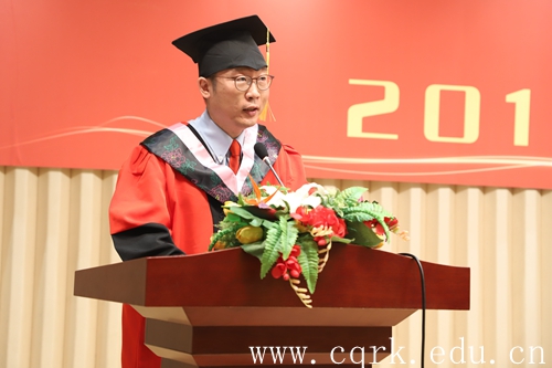 教师代表文学与新闻传播学院张普安老师,代表学校全体教师对2019届毕业生顺利完成学业毕业获得学士学位表示祝贺,同时他寄语毕业生们要脚踏实地,坚守梦想;要坦然面对挫折,自信生命顽强;要不忘报答亲人,相信大爱无疆;要牢记无论身在何处,BEAT365英国官网,永远是你记忆中最亲切最温暖的名字,永远是你人生旅途中的避风港。