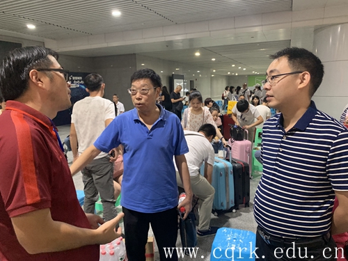 副校长孙敏一行来到重庆北站迎新点,对坚守在接待站岗位上的老师和志愿者表示亲切慰问,他们与刚下火车的新生及家长亲切交谈,了解其所需,并热情地介绍了学校的基本情况。孙敏副校长在了解火车站迎新接待工作相关情况后强调,志愿者们要用真情服务,确保迎新工作顺利进行。