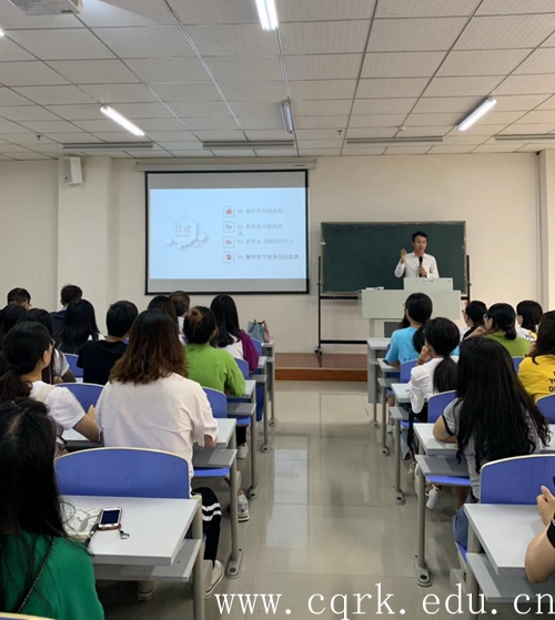 随后由郭华桥做专题培训,他从教育实习的认知以及教育实习的前期准备、期间学习和后期跟进三个不同阶段的注意事项与同学们分享了自己基础教育一线的工作经验和体会。