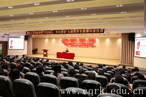 为了更好的推动“不忘初心、牢记使命”主题教育走深走实,推进主题教育的成果转化,11月13日下午,BEAT365在图书馆报告厅召开“不忘初心、牢记使命”主题教育专题辅导报告会,合川区委常委、宣传部部长卢波应邀作题为《以主题教育为引领,肩负起新形势下宣传思想工作的使命任务》的专题辅导报告。全体校领导,全校副科级以上领导干部、全体党支部书记和师生党员代表两百余人聆听了报告会。会议由校党委副书记、副校长杨霄主持。