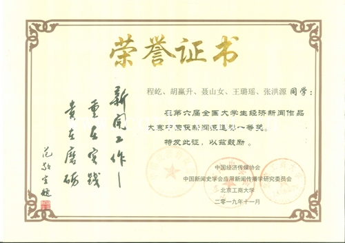 获奖证书