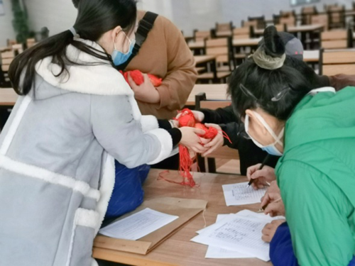 4月2日中午,护理学院教师为返岗进行合格评估和疫情防控工作的教职工们分发“驱瘟香包”。