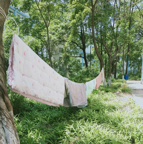 学生工作与就业处组织辅导员、宿管阿姨和后勤部门,利用返校期间难得持续的大晴天,为返校的孩子们暖心晒被。
