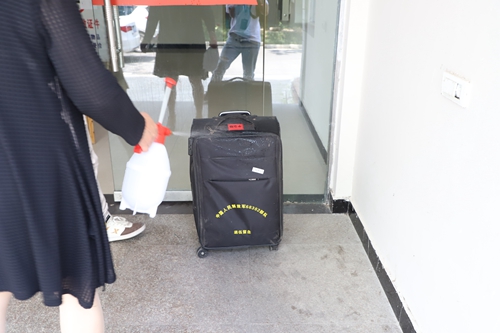 宿舍楼前,测量体温、登记信息、查验健康码、消毒行李……经过“测、登、验、消”四个步骤,返校同学方可进入寝室。