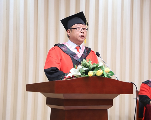 最后,校学位评定委员会主席、校长张跃光以“知行合一 敢于担当”为题发表讲话,他代表学校董事会、学校党委行政和全校师生员工,向圆满完成学业的同学们表示热烈的祝贺!向辛勤抚育同学们的父母、悉心教导同学们的老师、用心陪伴同学们成长的辅导员表示衷心的感谢和诚挚的敬意!他嘱托全体毕业生要牢记“厚德笃行,求真创造”的校训,坚守“捧着一颗心来,不带半根草去”的大学精神,锤炼品德,修养浩然正气,爱党、爱国、爱单位、爱家人、爱自己,在人生道路上走得更正、更远。