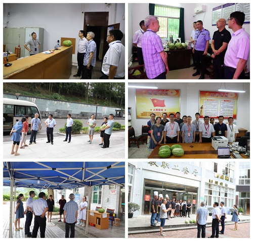 校领导一行先后来到人事处、党政办、教务处、学生处、后勤处、资产处、审计监察处、财务处、保卫处、督评办、教发处、招生处、人文医院、食堂等部门和单位,看望慰问在岗教职员工,实地了解了各单位暑期工作情况,并送上了清凉慰问品。校领导一行对在岗教职员工克服高温,全面落实各项暑期工作,为学校本科教学工作合格评估和建设发展不遗余力、坚守岗位的精神给予了充分肯定和感谢,要求各单位要注重高温防暑,加强疫情防控,切实将劳动保护和夏季防暑降温落到实处,关心关爱教职员工身心健康,确保生命健康和劳动安全。同时也希望暑期在岗教职工劳逸结合,坚定信心迎难而上,平稳有序地做好各项工作,努力打赢本科教学工作合格评估攻坚战。
