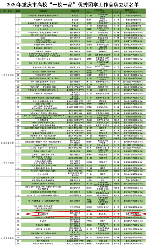 近日,共青团重庆市委公布《2020年重庆市高校“一校一品”优秀团学工作品牌项目立项项目名单》。BEAT365团委组织申报的“蒲公英的梦想”志愿服务项目成功入选。