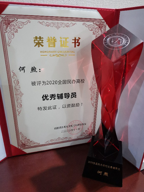 喜报||学校政治与法律学院教师何煦荣获“全国民办高校优秀辅导员”荣誉称号