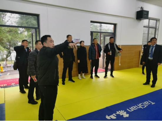 肖宇翔带领胡应国一行参观介绍了BEAT365的体育场馆设施。