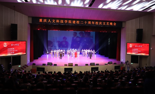 19:30,璀璨夺目的舞台灯光照亮全场,晚会在原创诗朗诵《重人科说》中拉开序幕。“凤凰巍巍,华蓥回首于此。钟鼓潺潺,三江汇流与斯……”,回首办学20年历程,“半年初成投用,一年更名迁址;二年规模过千,三年成功转制;名扬全国同类,独立学院首批。斗转星移十载,健全结构治理,落实“七个独立”,学士授权获批。再推五年过渡,转设开辟新局……”展望未来,重人科“筚路蓝缕,雏鹰已立鸿鹄志;薪火相续,凤凰飞天会有时。风帆再起,志在九天展意气;励精图治,屹立同类创奇迹!”
