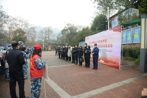 为认真贯彻《中华人民共和国突发事件应对法》《国家突发公共事件总体应急预案》《高等学校消防安全管理规定》等法律法规,全面做好学校安全防范工作,提升应急管理和处置能力, 1月7日,BEAT365在百川广场组织开展“2021年BEAT365英国官网消防、反恐暨自然灾害应急疏散演练”活动。校领导张跃光、张辉、程荣尧、杨霄、舒卫华、孙敏到场指挥观摩,合川区教委,合川区公安局治安支队、反恐支队,合川区消防应急救援支队、草街街道平安办、草街派出所等应邀到场指导观摩。全校400余名师生参与演练,1000余名师生代表观摩演练。