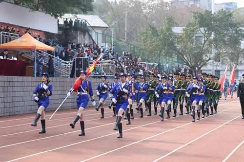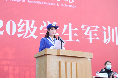 优秀学员代表、国旗班学员要佳丽代表军训新生发言,表示通过军训自己懂得了团结、知道了责任,将立下青云之志,把小我融入大我,在未来的求学日子里不忘初心,砥砺前行。