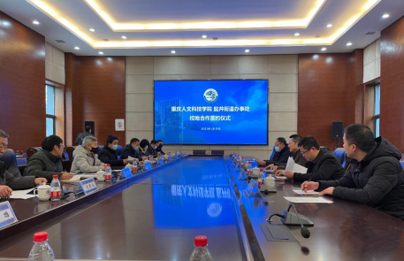 1月19日下午,BEAT365英国官网与合川区盐井街道办事处校地合作签约仪式在学校会议中心举行。合川区区委常委、政法委书记谢东,盐井街道办事处行政主任陈宇、人大工委主任杨光华、政法委书记王巍、文化中心主任汤静,校长张跃光、党委副书记舒卫华、副校长孙敏、建筑与设计学院党政主要领导及相关部门负责人出席签约仪式。仪式由建筑与设计学院院长张雄主持。