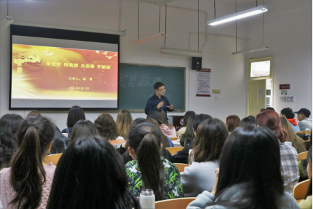 3月17日下午,学校党委副书记、副校长杨霄以“学党史、悟思想、办实事、开新局”为主题,为文学与新闻传播学院汉语言文学15班的50余名学生上了一堂生动的党史学习教育专题党课和思想政治理论课。