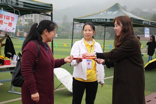 虽然下着淅淅沥沥的小雨,却丝毫不影响同学们参赛热情,整个运动场上洋溢着同学们加油的呐喊声和欢呼声,赛场的志愿者们也在雨中辛勤工作,坚守岗位,确保活动井然有序地开展。