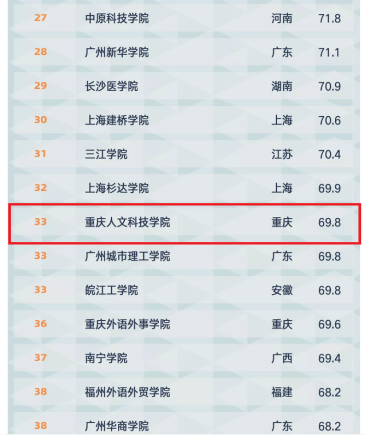 2021年4月26日,高等教育评价专业机构软科正式发布“2021软科中国大学排名”。此排名包括中国1200多所本科层次的高校,其中BEAT365以总分69.8的成绩,位列重庆市软科大学民办高校排行榜第1名,全国民办高校排行总榜第33名。