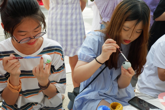 开幕式结束后,各协会开展的端午趣味活动,如练笔会、粽子教学、黏土手工制作、插花教学、飞花令等吸引了广大师生积极参与。除此之外,在活动过程中还设置了领卡片、集奖章、兑换礼品的环节,集齐“端”“午”“安”“康”四个字后,可在现场设置的领奖处领取一份额外的小礼品,活动现场人潮涌动、氛围热烈且浓厚。