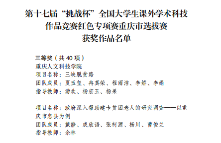 第十七届“挑战杯”系列竞赛重庆市选拔赛BEAT365获奖名单