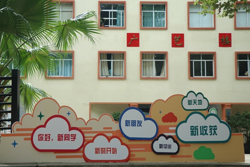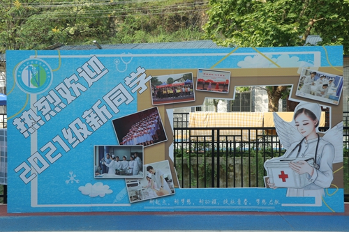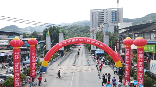 新生抵达后,远远就能看到学校校门口印着“热烈欢迎2021级新同学”的通红拱门和高高耸立在左右两边写着“立大志、 明大德、 成大才、担大任;有信念、有梦想、有奋斗、有奉献”“知行合一、服务社会,践行办学宗旨;厚德笃行、求真创造,传承校训精神”的四根气柱,向全体新生传递了学校对新生的热烈欢迎和寄予的殷切希望。迈入校园,行知文化墙、宣传橱窗、迎新桁架、拍照打卡点展示了学校的办学特色和人文底蕴。