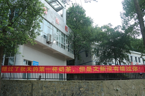 各学院迎新点,也极具特色,用直白热烈的方式展示对2021级新同学加入学院大家庭的欢迎。文学与新闻传播学院教学楼门口,悬挂着“错过秋天的第一杯奶茶,但是文新没有错过你”的迎新横幅;艺术学院、机电与信息工程学院在迎新点前搭建了别致的迎新门廊,传达出“迈进这个门,你就是我罩的人”的学院归属感。体育学院、护理学院、工商学院等学院在迎新点架起迎新签名墙,新生们书写着对未来的期待,老生们则表达了对新同学的祝福和欢迎。同时各学院还向新同学发放暖心欢迎礼物,礼轻但情意重,愿新同学在未来四年能学有所成,明确方向,实现人生价值。
