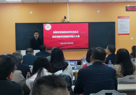 为贯彻落实中共中央办公厅 国务院办公厅《关于深化新时代学校思想政治理论课改革创新的若干意见》文件精神,推进学校思政课教育教学改革,10月20日下午,学校第四届思政课教师课堂教学能力大赛决赛在16教学楼303智慧教室举行。党委副书记、副校长杨霄,党委宣传部副部长匡霞以及马克思主义学院党政领导出席,马克思主义学院教学督导委员会成员担任评委,全体思政课教师现场观摩。