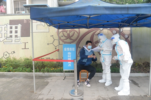 为深入落实重庆市关于新冠肺炎疫情防控工作要求,全面做好学校新冠肺炎疫情应急处置工作,确保广大师生生命安全和身体健康。根据学校新冠肺炎疫情防控领导小组工作部署,11月11日下午15时,学校疫情防控工作领导小组办公室协调组织相关部门开展了疫情防控应急演练,演练分为校大门的疫情应急处置和大规模核酸采样检测两个环节。校长张跃光、党委书记张辉、副校长程荣尧、党委副书记舒卫华,相关职能部门负责人、各二级学院党总支书记、以及师生和教职工代表1200余人全程参与了本次演练。