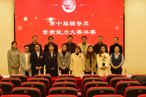 为深入学习贯彻习近平新时代中国特色社会主义思想,不断提高辅导员队伍的专业水平和职业能力,提升大学生思想政治教育质量,11月25日,学校在雕塑园报告厅举办了第十届辅导员素质能力大赛决赛,纪委书记、副校长程荣尧,党委副书记舒卫华,副校长孙敏,党群工作部部长王小娟,教师工作部部长蒋厚兰,统战部部长冯沈萍、学生工作部部长朱宇、党委宣传部副部长匡霞莅临比赛现场并担任比赛评委,各二级学院师生代表共200余人观看比赛。