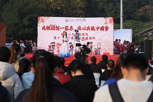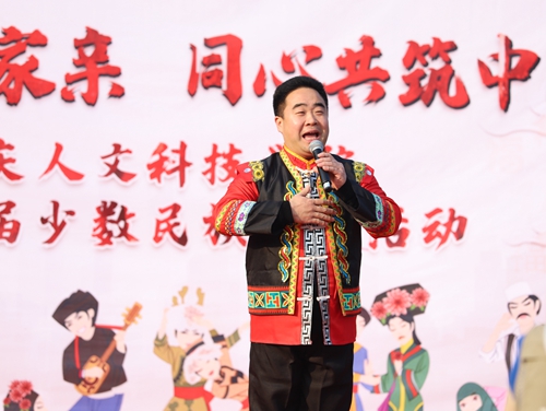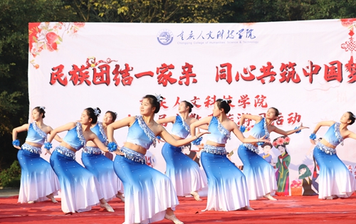 在开幕式表演中,艺术学院、学前教育学院学子带来的《掀起你的盖头来》《站在草原望北京》等少数民族舞蹈以优美的舞姿吸引了现场观众目光,艺术学院教师吉国强、覃姿颖独唱的《唱支山歌给党听》《打起手鼓唱起歌》将开幕式推向了高潮,赢得了观众热烈的掌声。