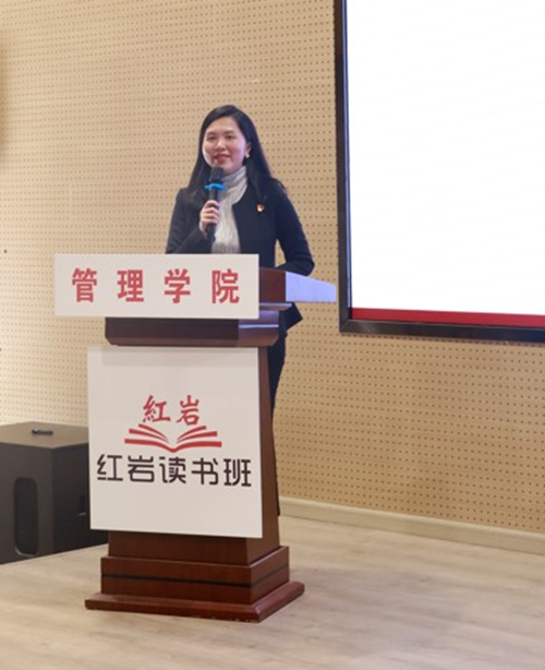 仪式上,吴静就“红岩读书班”的创办初衷以及红岩读书班如何“读”二个方面,作了介绍。她指出创办管理学院党总支“红岩读书班”目的在于采用一种特别的形式和方式,检验学院红岩精神、红色文化的学习成效,巩固学习教育成果,凝心聚力,开拓创新。同时吴静还强调“红岩读书班”,要读清中国共产党发展的历史脉络、读懂中国共产党人高尚的精神品格、读出中国共产党人的奋进之志。