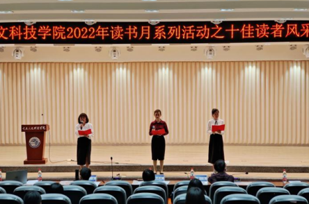 “读书是打开人生的一把金钥匙,打开一本书,就好比打开人生的大门……”5月17日,学校行知报告厅正上演着一场精彩绝伦的风采展示秀,图书馆读者服务部教师王本珍、韩寅璞、高曼以一段声情并茂的朗诵《打开书》,拉开了学校2022年读书月系列活动之十佳读者风采展示大赛的帷幕。图书馆馆长杨晓琼、学生工作与就业处处长朱宇、校团委书记韩亮莅临比赛现场并担任评委。比赛由图书馆读者服务部教师牟春柳主持。