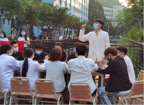“唱支山歌给党听,我把党来比母亲……”5月15日中午,一片嘹亮的歌声响彻慧园园区。闻声寻去,一群朝气蓬勃的青年学子正在深情齐唱这首献给党的歌。突然,歌声戛然而止,“中共一大从上海法租界望志路106号转移到嘉兴南湖召开……”一名“战士”的旁白,将现场观众带回中国共产党成立之初的那个年代、那段党史,共同感受先辈们在黑暗中探索光明的艰辛和伟大精神。