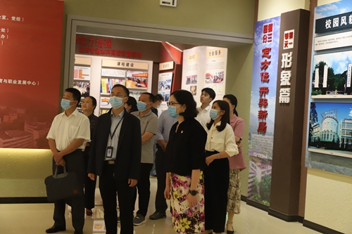 邓立一行实地考察参观了艺术学院戏剧与影视实训大楼,校史馆,建筑与设计学院展览馆、BIM智慧城市科研实训室和行知工坊实训室等。
