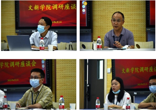 调研座谈会上,文学与新闻传播学院院长高廉平就学院概况、学生工作、教学工作、学科专业建设、师资发展以及办学条件等方面内容作了详细汇报,客观分析了学院发展中存在的问题和短板,并针对性地汇报了学院下一步的工作思路。