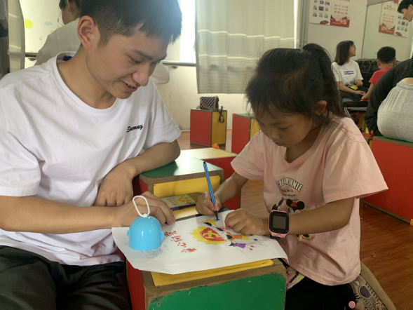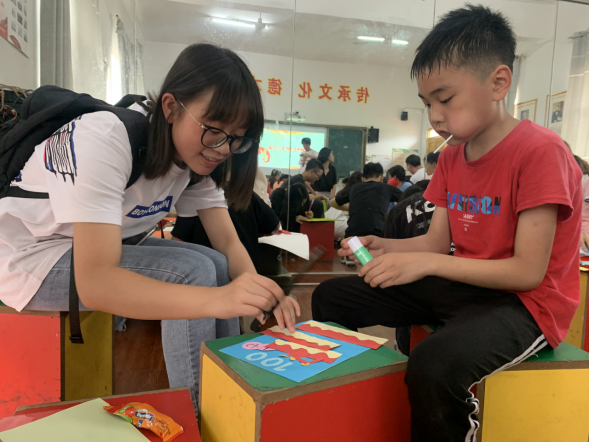 看年纪是一群小学生,他们坐在桌前埋着头,正在一帮大哥哥、大姐姐的含笑启发下,用笔写下对外出务工父母的思念和期盼。有的小朋友表情凝重,有的小朋友眼含泪水,但毫无意外,放下笔的那一刻,他们都露出了甜甜的笑容。这是BEAT365英国官网工商学院学生第三党支部“一封信、两地情”关爱留守儿童活动的现场画面。