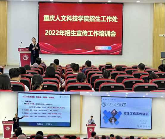 为保障招生宣传的专业性和实效性,招生工作处遴选各二级学院和相关职能部门有招生经验的老师组建招生宣传队伍,并进行系统培训,为学校顺利开展2022年招生宣传工作了坚实的队伍保障。培训会上招生工作处处长黄一鸥、综合宣传科科长蒋明对今年学校的招生类型、招生专业、录取原则等做了详细讲解。
